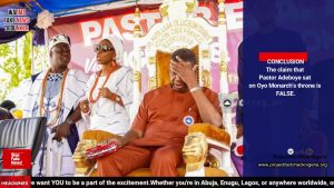 The claim that Pastor Adeboye sat on Oyo Monarch’s throne is FALSE.