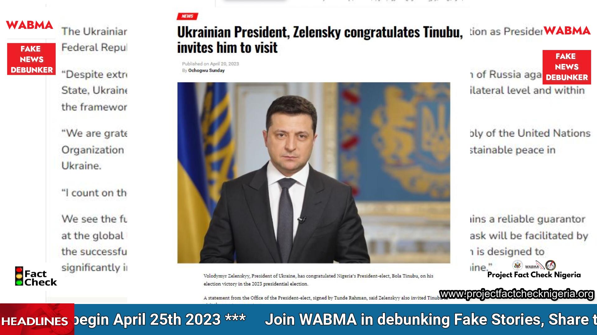Over one month later, the campaign office of Tinubu issued a release claiming the Ukrainian president congratulated Tinubu.