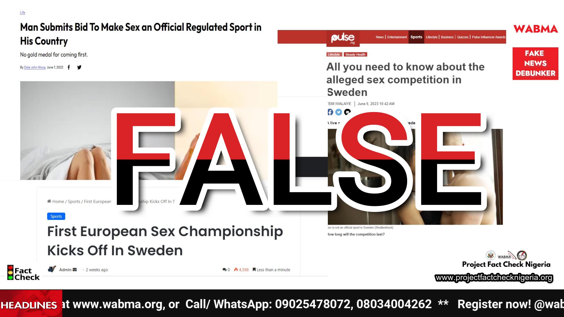 Multiple reports have emerged that Sweden has adopted sex as sports. They claimed that a first-ever European sex championship will hold June 8 in Gothenburg.