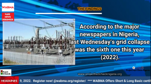 According to the major newspapers in Nigeria, last Wednesday’s grid collapse was the sixth one this year (2022).