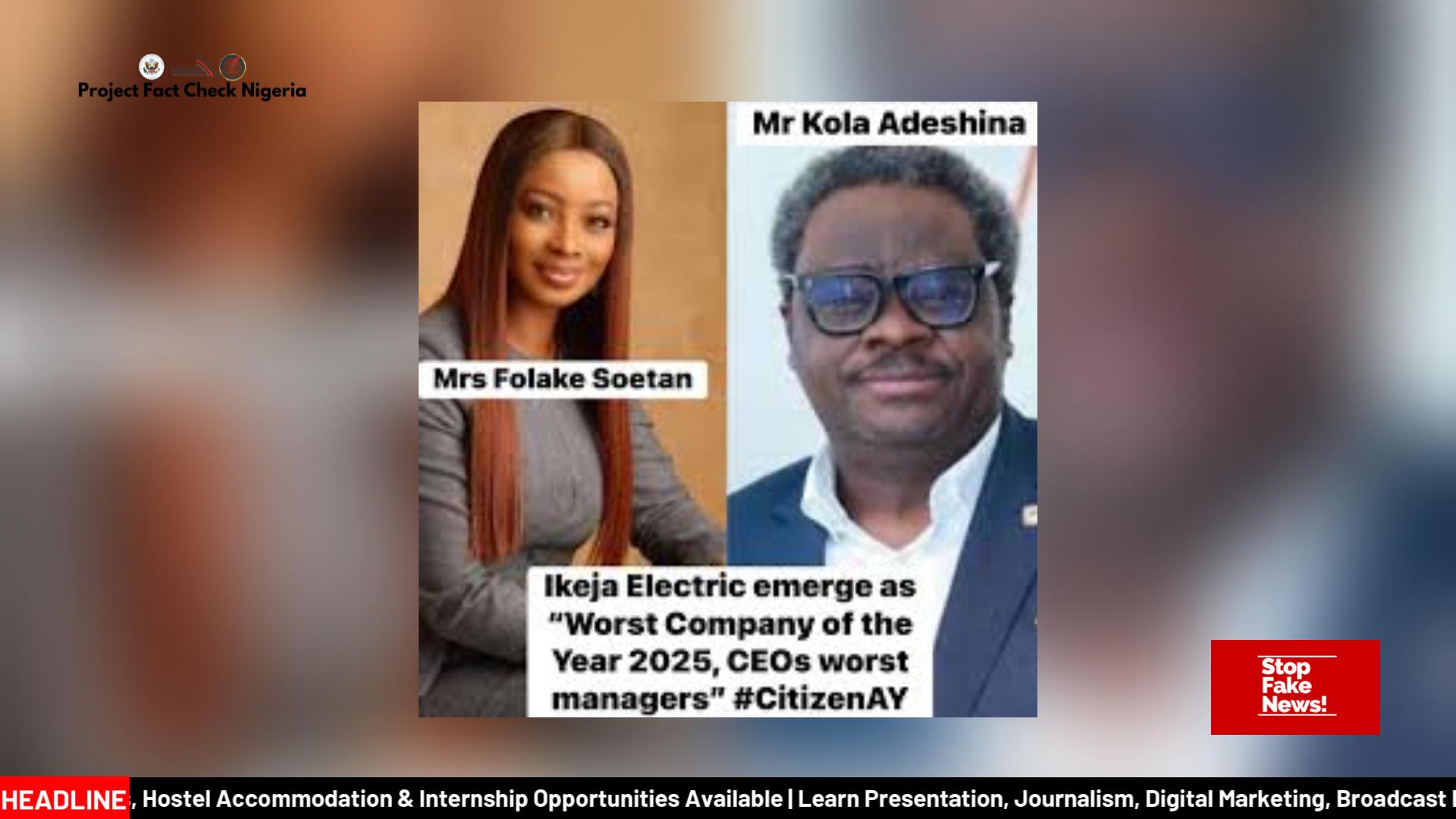 We fact-checked the viral claim that Ikeja Electric was named “Worst Company of the Year 2025” and that its executives received “Worst Business People” awards. Read the verdict.